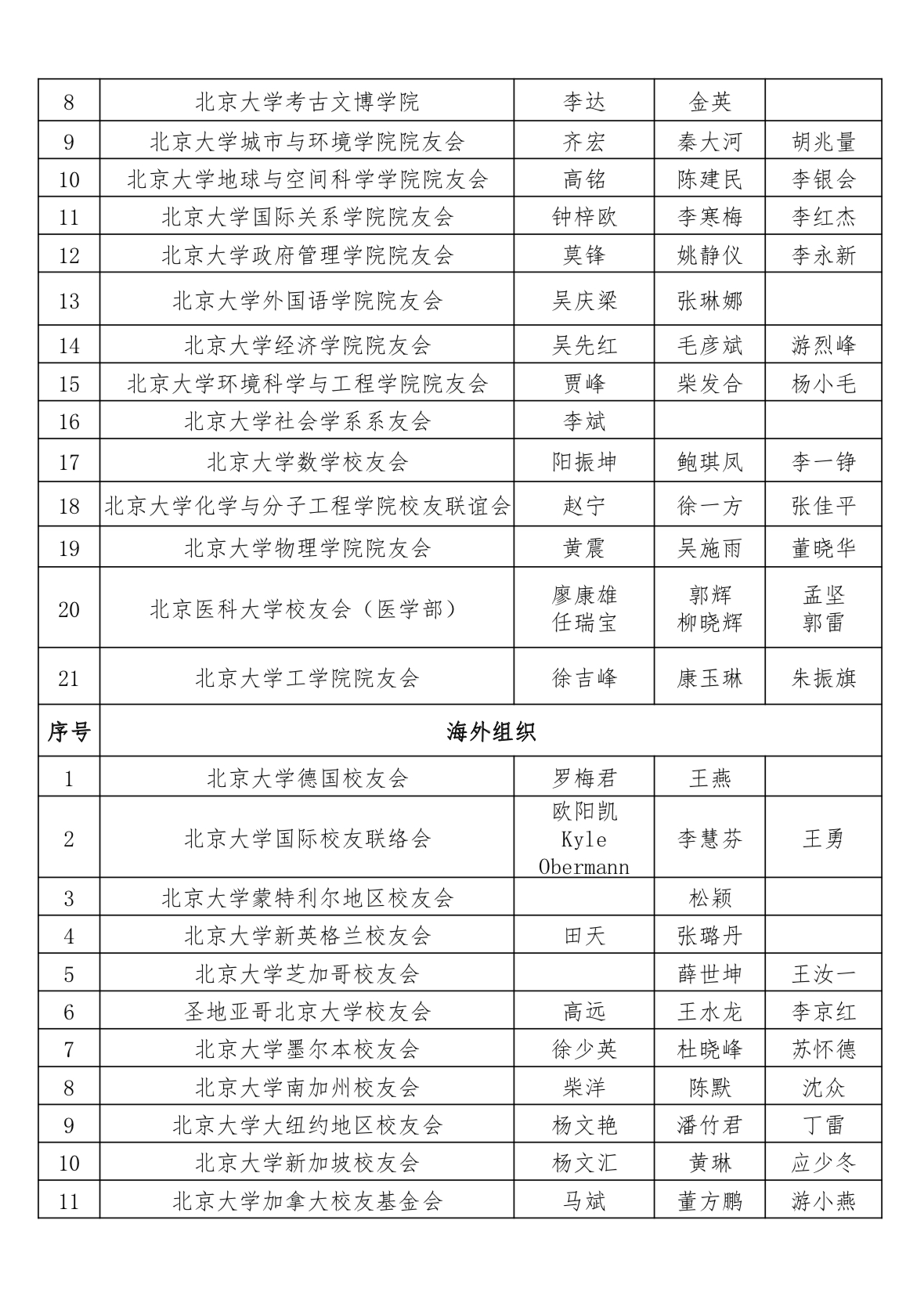 北京大学校友会组织贡奖