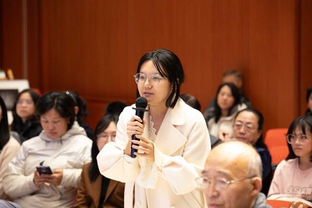 在听众互动环节,有人询问“草叶”意象的内涵,李印白解释道,草代表生命、平等和那些微不足道的人与事,正如惠特曼所言,小草能从头盖骨的缝隙中钻出,象征着渺小中蕴含的巨大力量。对外汉语教育学院的同学提出关于黑白摄影的思考,施坚补充解释道:“艺术的格调靠减法来提升,黑白摄影减少了色彩,因而更为难得。”法学专业的学生则从惠特曼的平等精神出发,探讨了当代社会的精英主义问题,李印白坦诚回应,鼓励大家追求内心的光明。
