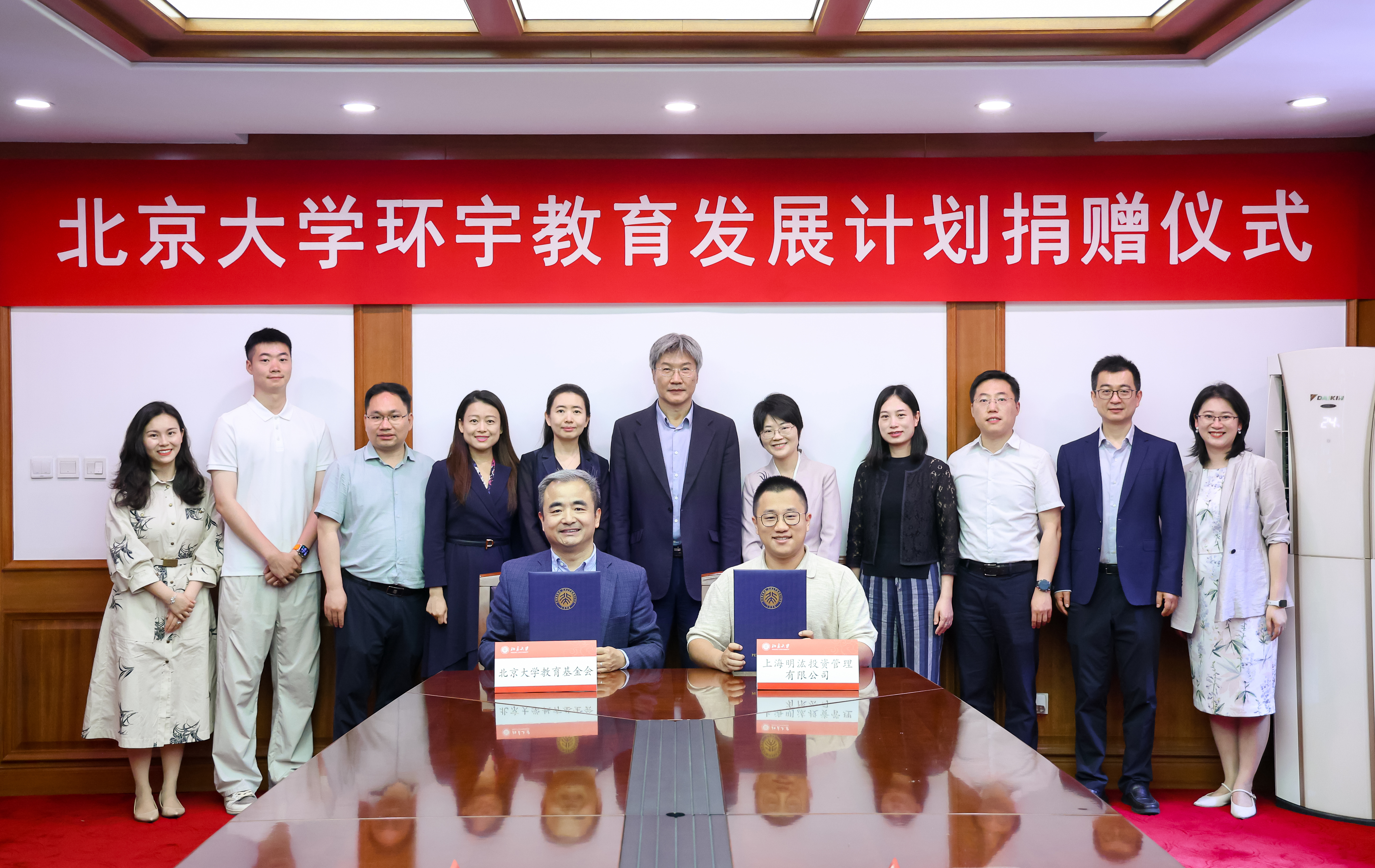 5月21日,北京大学环宇教育发展计划捐赠仪式在临湖轩举行。上海明汯投资管理有限公司捐资支持北京大学环宇教育发展计划,促进北大人才培养工作,助力北大教育事业发展。捐赠仪式之前,北京大学党委书记何光彩会见了明汯投资合伙人、玖思科技创始人解环宇校友一行。教育基金会秘书长李宇宁主持仪式。