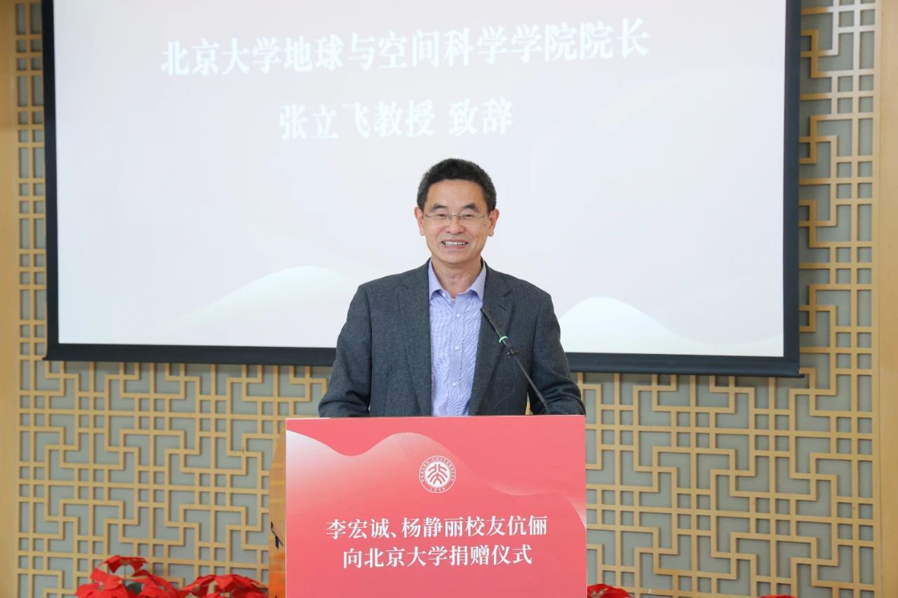 张立飞表示,两位校友以自身的行动诠释着“天地人”精神的广博内涵和北大地空人的担当,他们的支持彰显了对学院建设的深切期许,也将为学院发展注入磅礴动力。他指出,近年来学院已走上快速的发展轨道,未来将以这笔捐赠为纽带,搭建更多连接院友与学子的桥梁,让“天地人”精神在传承中焕发新生。