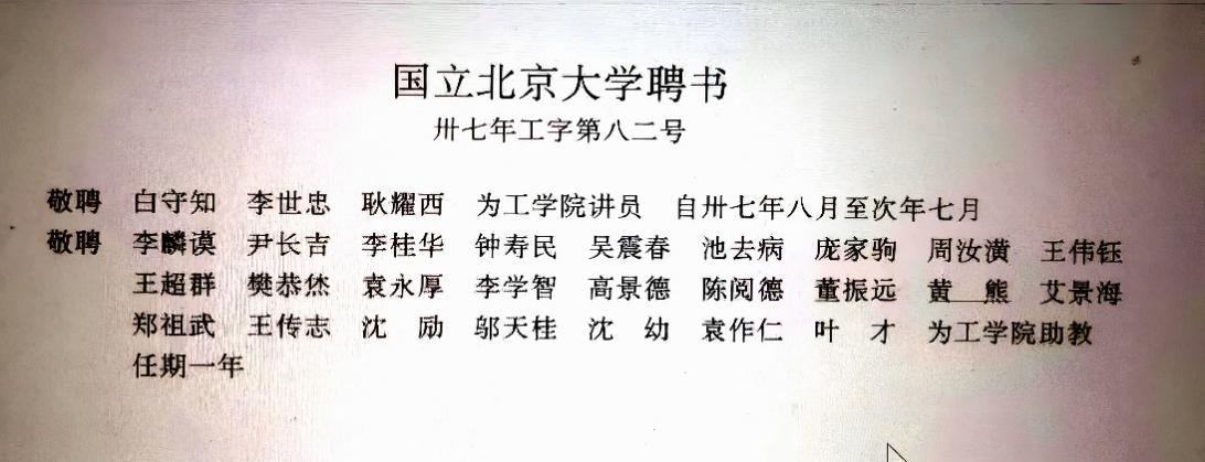 经过熟人推荐和校方面试,父亲的工科教育背景和敏而好学的求知态度得到肯定,在1947年7月14日的北京大学第45次会议上,父亲黄熊被聘为北京大学工学院助教。