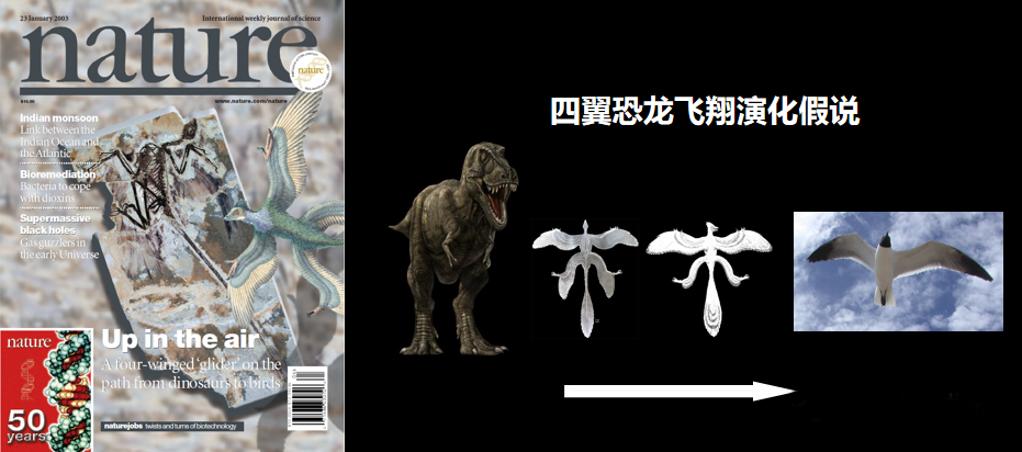 这篇论文一经发表,立刻引起了轰动,成为了很多科学家关注的焦点。而且通过这篇论文,他们还提出了“四翼恐龙如何演化出飞行能力”这样一个假说,所以在接下来的十几年里,他们又找到了更多的化石证据,做了更多的分析。他们发现,不仅小盗龙长了四个翅膀,其他一些恐龙,甚至一些鸟类都长了四个翅膀,这四个翅膀帮助恐龙飞向了蓝天。