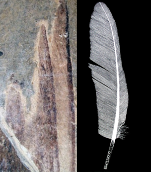比如他们发现的这个小盗龙化石,从它的一些身体结构,比如脚趾的大小,可以推断出小盗龙可能生活在树上这一结论,这个发现让他们把生活在地面上的和飞行在天上的恐龙联系到了一起。 后来他们有了更惊人的发现:小盗龙身上的羽毛是不对称的。