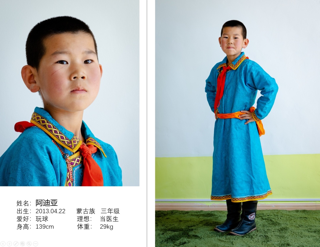 为了让影像档案呈现出更为丰富的信息,除了为学生们拍摄大头像和全身像之外,刘学红还会特意请学校老师提前收集班上学生的个人信息,这些信息包括身高、体重、民族、生日,还有爱好和理想。“我特别喜欢问他们:你喜欢做什么呀?你知道北京大学吗?”刘学红认为,孩子们在成长的过程中,爱好和理想是经常变化的,这些变动与相貌的变化都是值得记录、保存的信息。“很多孩子长大了以后,都忘了自己小时候的爱好、理想。如果能够拥有记录,他们就能回顾,想起以前的自己,跟童年的自己对话。”