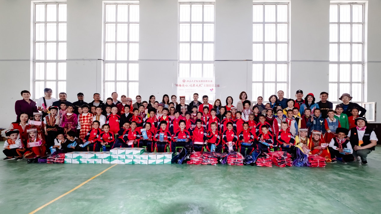 在笆子房村小学,四川校友会为学校捐赠书包、文具;拍摄期间,2001级校友刘凤祁、2009级校友孙永超等不仅全程陪同,还为摄影俱乐部提供了许多便利的条件。在新疆塔什库尔干乡小学,新疆校友会帮忙联系活动学校、代办捐赠物资的采购,国发院EMBA校友朱晖更出资为学生捐赠校服、鞋子,以及照相设备。在尖德小学,由1980级校友黄永山负责的萨岗小溪教育基金出资为学校捐赠了定制羽绒服、被褥、电视机;2023年重访时,参加摄影计划活动的全体校友向学校捐赠体育器材。在内蒙古达来诺日镇民族实验小学,1988级部分校友为学校捐赠高清电子屏。在河北阜平台峪小学,1985级法律系校友唐越代表君合律师事务所向学校捐赠了数十台电脑、上千册图书、钢琴和教学文具,并携手律所的年轻人走进学校,开展多元课程。此外,摄影俱乐部的校友们也身体力行,不仅多次捐赠,前后还有近20位校友亲身参与,跋山涉川,克服种种困难,以实际行动支持影像档案计划的拍摄。
