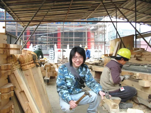 2013年4月20日雅安地震后,汤诗伟前往雅安修复明代建筑观音阁。