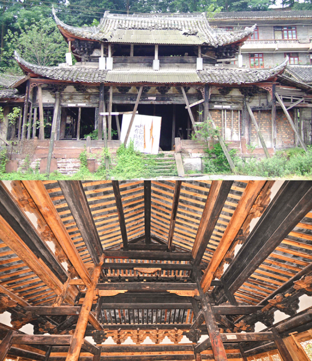 因为缺乏保护意识和经费,过去五年多建筑一直受到雨水侵蚀,等汤诗伟到达时,建筑内部已经残破不堪,几乎每一根柱子都靠临时新加的四五根小柱子支撑着。