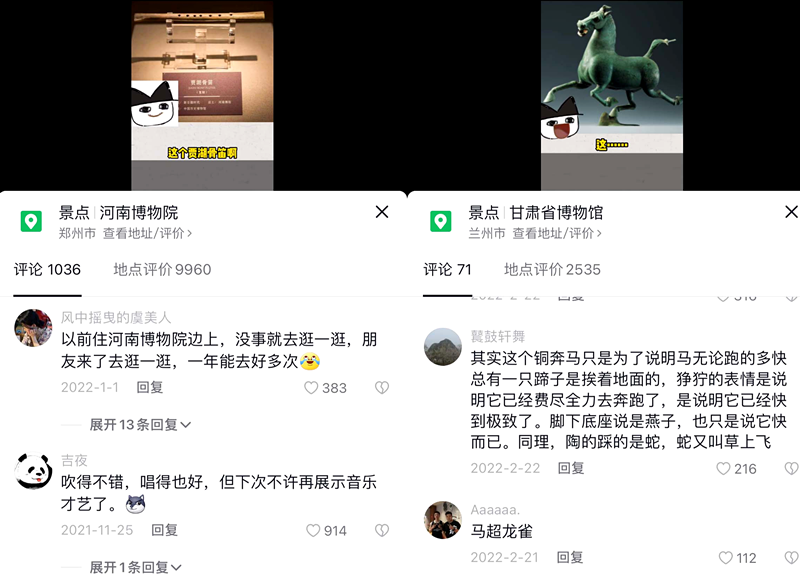 “哎,这有意思呀!”相同的开场白、不同的描述,虚拟形象古猫还时不时跑出来代替观众提问或吐槽,有时甚至还会让不同的文物“隔空对话”……这些视频既有知识性又有趣味性,很快得到了粉丝的认可。