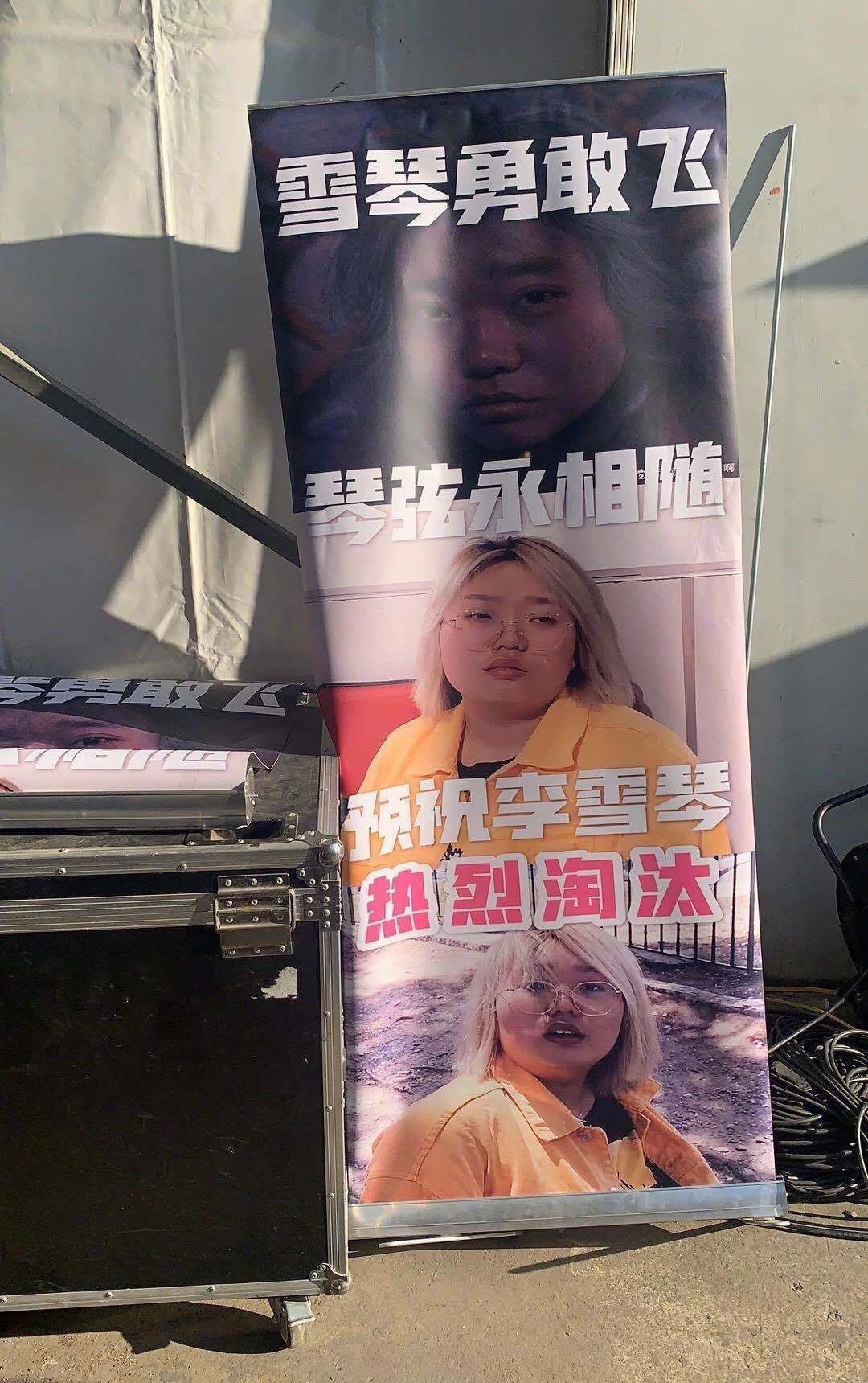 那时,李雪琴还没有进半决赛,天天为了写稿发愁,万旭就拉着室友陪她打麻将,还跟她打赌,如果真进半决赛了,就从北京订两个两米的易拉宝去上海做应援。后来,李雪琴进了半决赛,万旭真的从北京背了两个两米的易拉宝去上海——易拉宝上印着3张李雪琴臊眉耷眼的照片,还有一行字:预祝李雪琴,热烈淘汰。