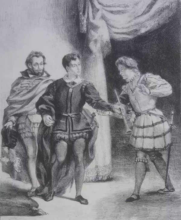 十九世纪法国浪漫主义画家欧仁·德拉克洛瓦(1798-1863年)为莎士比亚的戏剧《哈姆雷特》创作的一系列插图之一