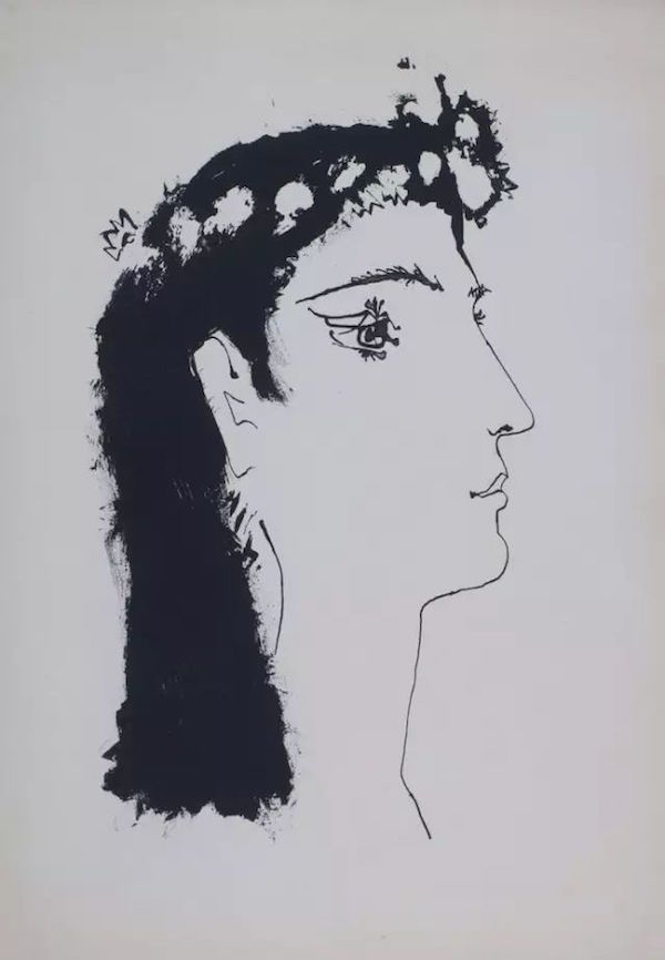 1935年,毕加索将著名诗人路易斯·贡戈拉的诗集《二十首诗》手抄一遍,每首诗配一幅画,并做成了铜版画,改画就是其中之一。