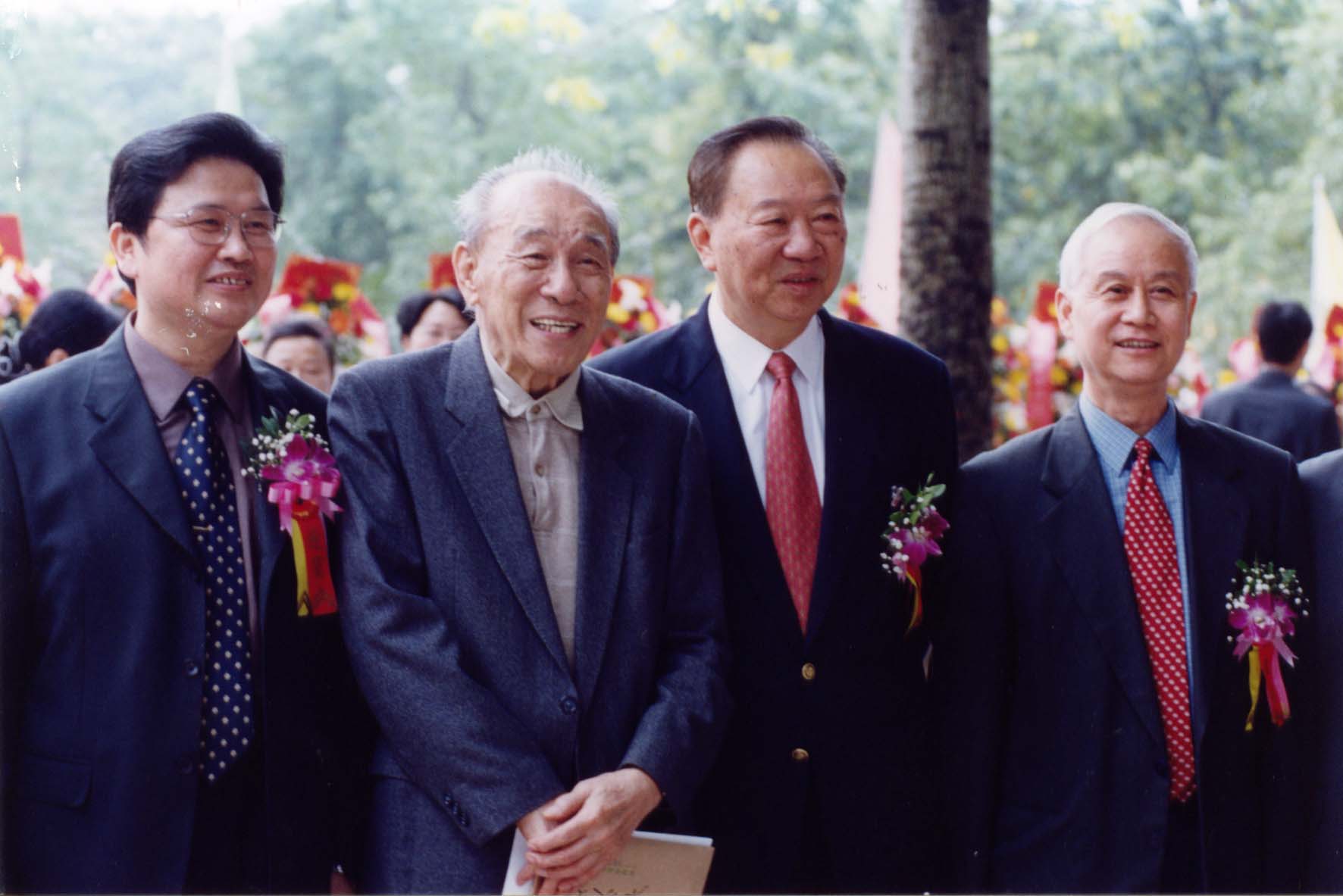 1993年育才建校20周年,育才教育集团成立。袁庚与王世祯莅临庆祝集会。(右一为陈难先)