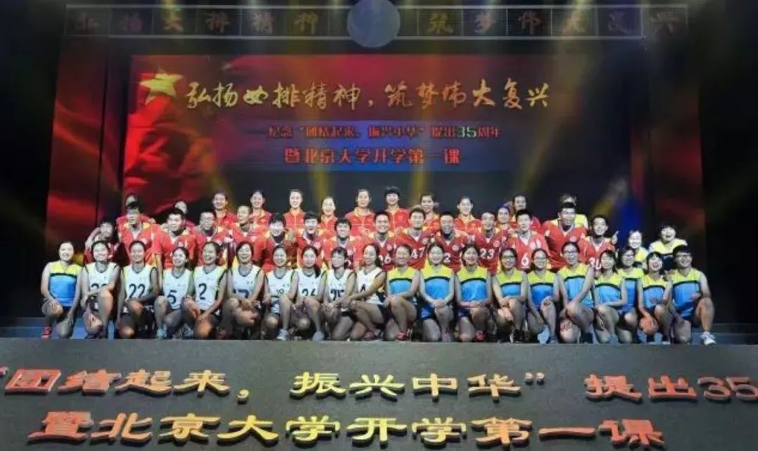2016年9月5日下午,在里约奥运会上夺得冠军的中国女子排球队来到北京大学参加纪念“团结起来,振兴中华”提出35周年活动暨北京大学开学第一课。