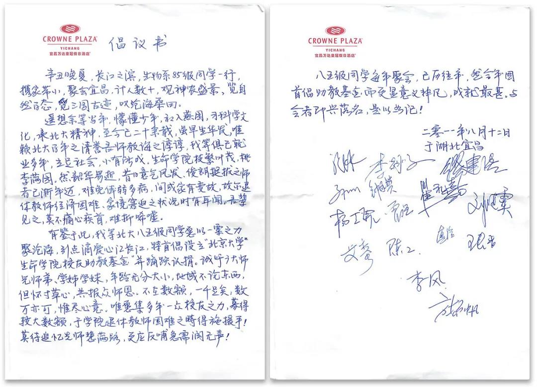 挂念恩师,山高水长。2011年8月12日,在湖北宜昌举办的一次1985本校友聚会上,与会的13名生科校友有感于恩师“韶华易逝,昔日意气风发、俊朗挺拔之师者已渐年迈,难免体弱多病,间或家有变故”,毅然发起捐赠倡议。经报学院并学校基金会,2011年底,“北京大学生命科学学院校友尊师基金”应运而生。谁曾想,十年前的希望幼苗,竟会一路成长为遮阴避雨的参天大树……