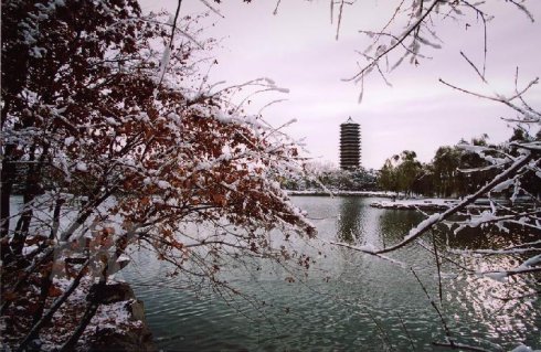 北京大学未名湖里的博雅塔倒影。摄影/中国新闻周刊记者 董洁旭