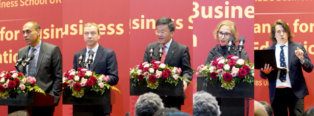 5月4日下午的商学教育专题论坛以“高等教育中商学研究所面临的新挑战与新要求”为主题,来自牛津大学、伦敦政治经济学院、伦敦大学学院、布里斯托大学、QS(Quacquarelli Symonds)、中国建设银行等世界顶尖院校、机构的学者应邀参会。北大汇丰英国校区部分校董,EMBA、MA-PhD项目部分学生,北大汇丰-北大国关合作培养的本科生等近200人参加活动。