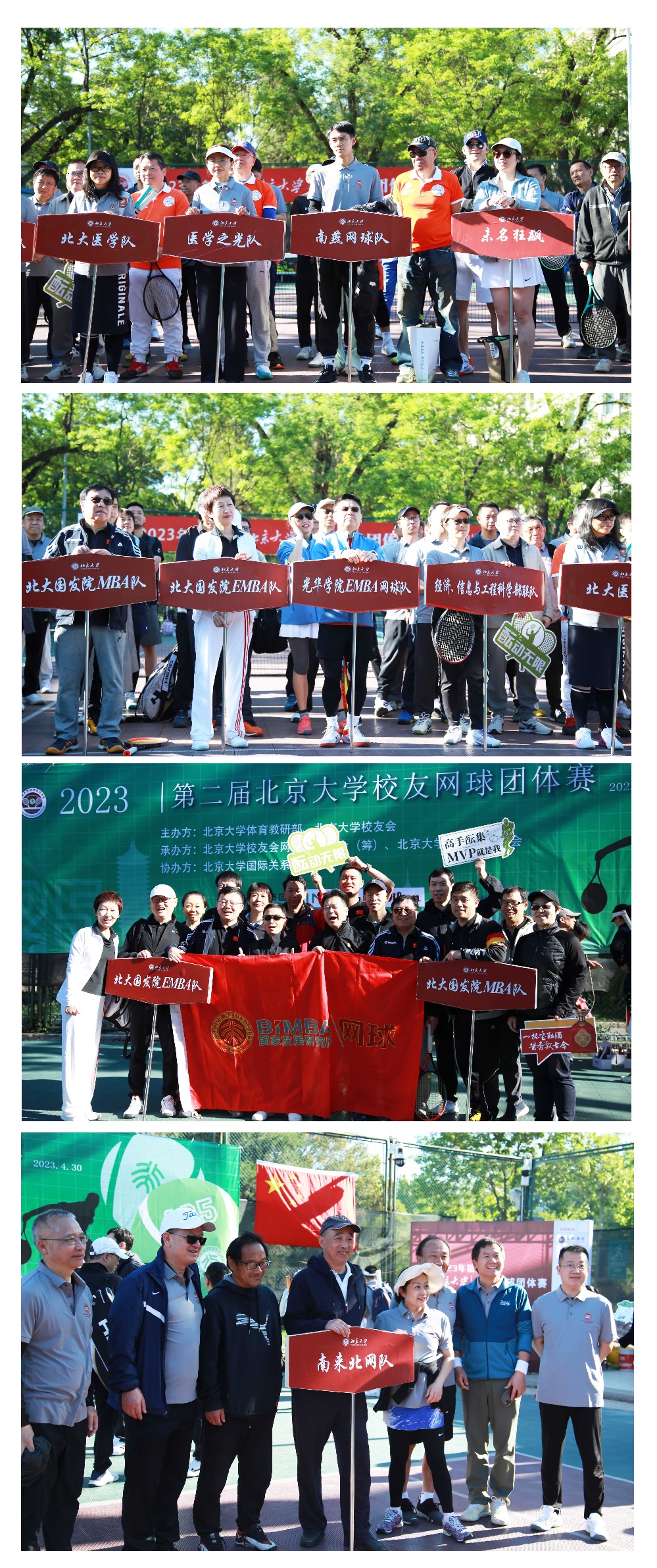 春和景明,微风送情博雅;夏煦天光,青木传绪未名。季春燕园,静花疏影,芳华满庭。在北京大学即将迎来建校125周年之际,北京大学校友会联合北京大学教工网球协会、体育教研部和北京大学国际关系学院,于2023年4月30日在北京大学二体网球场举办第二届北京大学校友网球团体赛。
