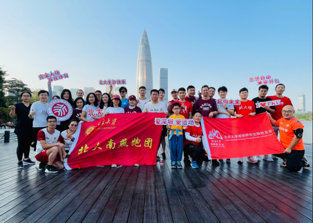 5月4日校庆日当天,北大南燕跑团深圳分舵在深圳湾人才公园举行了线下校庆跑活动,近30位校友和家人一起完成了5.4公里的跑步活动,并录制视频为母校送上最真切的祝福。