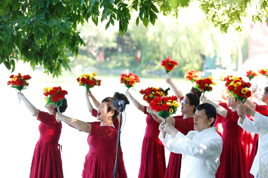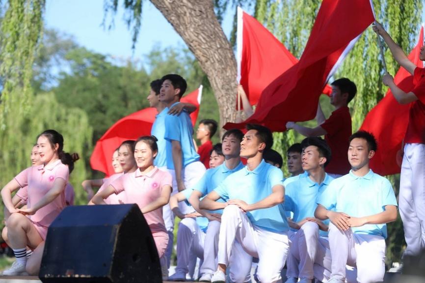 200名师生代表及北京大学保卫系统、后勤系统职工代表合唱《社会主义好》,以社会主义建设者的自豪感,讴歌了社会主义建设的巨大成就,也唱响了新时代每一位平凡奋斗者不平凡的追梦之歌。激昂动人的旋律,让未名湖两岸的师生也加入了合唱,现场气氛达到了第一个高潮。