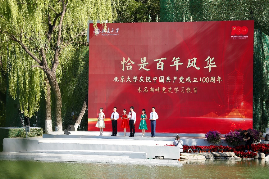 2021年是中国共产党成立100周年。从红楼到红船,从石库门到天安门,一艘小小红船承载着人民的期盼、复兴的希望,乘风破浪,成为领航中国行稳致远的巍巍巨轮。为传承百年荣光,深入在全校师生中开展党史学习教育,2021年5月29日下午,北京大学庆祝中国共产党成立100周年未名湖畔党史学习教育隆重举行。