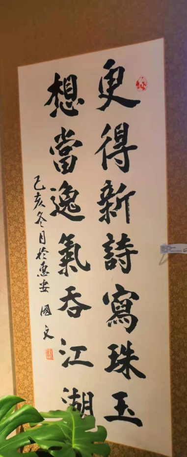 郭世涛会长带来鲁美教授、清华大连校友会吴一源副会长赠送的书法作品,李雪梅秘书长带来书法家王国文校友赠送的两幅书法作品,第一批共28幅书画作品参展。