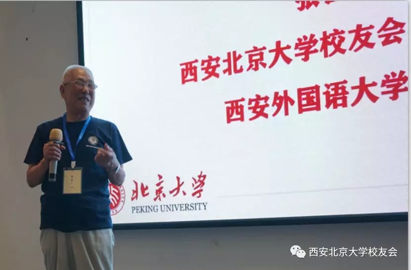 老校友代表——西安外国语学院张世广教授,年过八十的张教授是从张家界走出来的第一个北大人,他简要讲述了自己的不凡经历和干一行爱一行干好一行的奋斗精神及家国情怀,勉励新生只要坚持不懈,坚信自己心中的目标,定能取得优异的成绩。张教授激情满怀祝福:“我相信,将来,精英们会出现在你们中间”。