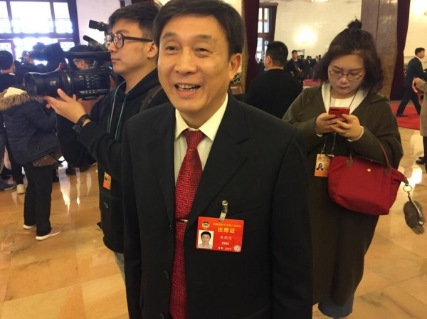 国政协委员朱晓进接受媒体采访。 李卓谦摄