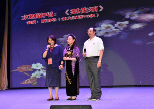 北大76级西语系校友、北大德国校友会名誉会长、德国京剧协会秘书长顾裕华远道而来,为现场观众表演了梅派京剧唱段《梨花颂》,字正腔圆,深情款款。可想而知,北大人走出国门,心里却永远不忘中华文化的根脉。博雅胸怀关天下,北大人足迹遍世界,也将中国文化传遍世界。