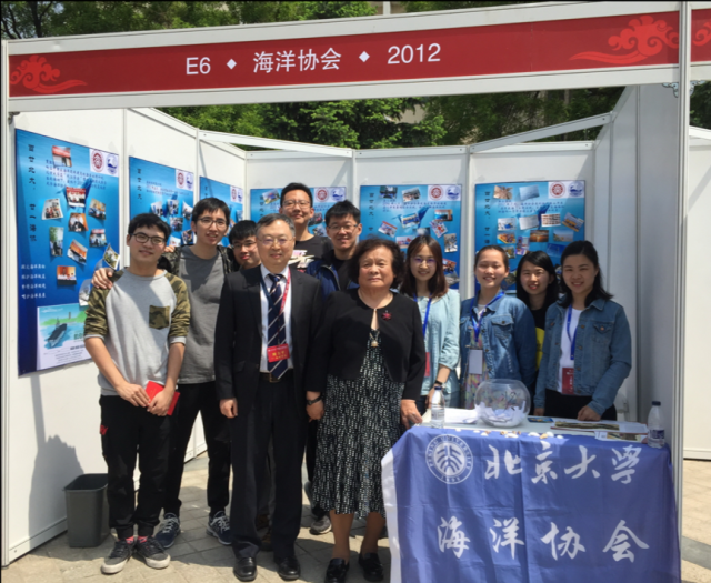 2018年5月4日,北京大学原地质地理系56级校友、中国科学院院士、南京大学地理与海洋科学学院王颖教授回到母校参加建校120周年纪念大会。会后,王颖院士在长江学者、城市与环境学院周力平教授(原地理学系77级)的陪同下来到第22届社团文化节主题展的海洋协会展台。