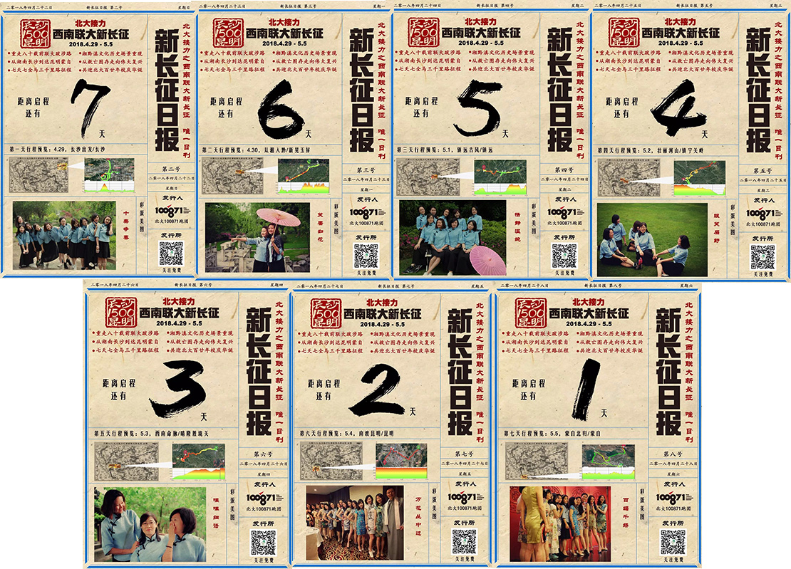 99天团平时就是跑团里一支庞大的队伍,他们自己评价自己:“红包如雨,大腿如云,能干会玩,团结有爱。”参加这次活动的目的,他们也用16个字来概括:“追思先辈,策马群山,乘风骋怀,不负前贤。”这一队为这次西南联大新长征活动,专门赋诗一首,抄录如下: