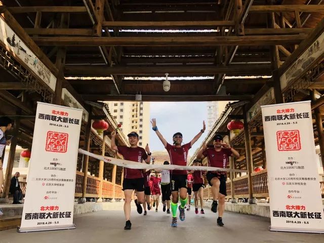 这是“北大接力-西南联大新长征”活动的第二天,北大跑团跑步全程42.5公里,全部行程84公里。起于风雨桥,终于风雨桥。这一天的活动圆满结束。