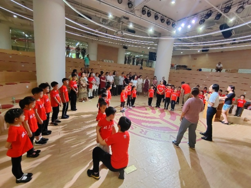 今年5月,雏鹰社合唱团成立并首次招新,旨在通过体系化的学习和各种演出机会的实践,为小小北大人创造自我提升和展示的平台,不断提升小小北大人的音乐艺术水平。合唱团由雏鹰社副理事长杨玉娟任团长,北京大学学生合唱团原团长林楠、李尚和张美阳三位老师为特聘指导老师和评委。经过清唱、模唱等一系列现场考核,最终50名小雏鹰入选合唱团,并根据年龄被划分为幼儿团和学龄团。