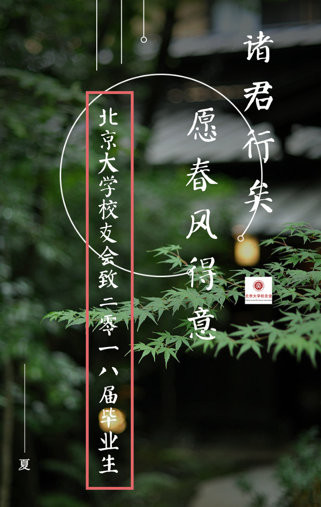浸润经年,你们终将鱼跃而出。北大之于你,如未名湖的一泓水,浓绿,丰富,滋养着若干年前那个干渴但蕴藏着丰富能量的生命。如今这生命已饱满,博雅塔的光与未名湖畔的风,鼓胀在你们的血脉中。还有一种气味,是夏日里紫藤的清香,银杏的微苦,沾染在所有北大人身上,成为记号,天南海北,让我们凭此相认。