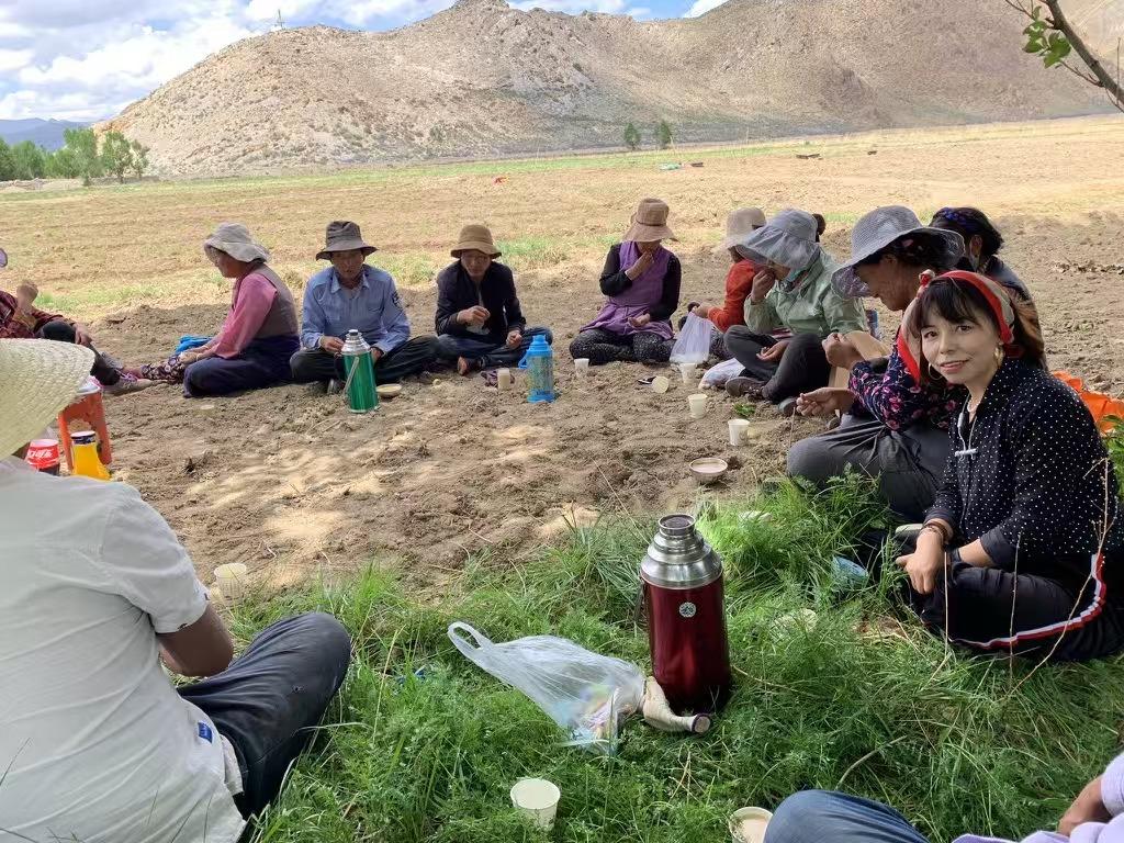 进入田野的第一个月里,每天都是全新的体验。她曾骑着三轮车在乡间小路上飞驰,也下地与村民们一同播种藏香草,导师看到她发来的照片,笑称“简直就是一个地道的农民”。令仁增卓玛难忘的是,全村人为考上大学的孩子举办的欢送会。煮米饭、献哈达,“乡田同井,出入相友,守望相助”的淳朴民风在此刻具象化。