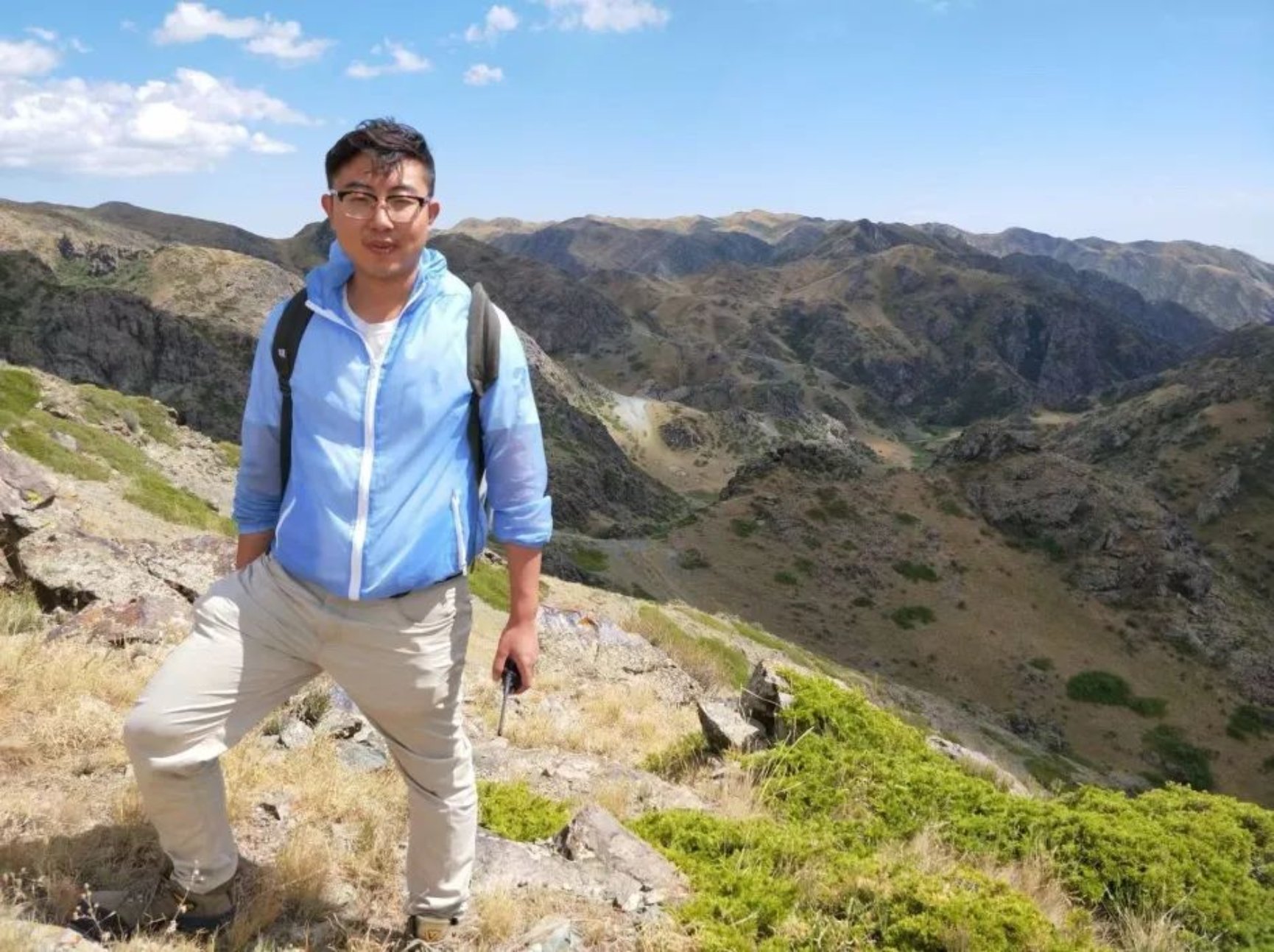 作为一名“地学人”,从本科开始,就少不了野外的实地考察。从巍峨万峰的秦岭到苍茫辽阔的阿尔泰山,从大别山的苍翠再到五台山的雄浑,汗水留在大地山川上,与岩石为伴,与泥土相融。从2018到2021年,在课题组的安排下,李昂利用暑期前往新疆实地开展野外工作,勘察、记录、采样。“每一年的野外工作都会得到新认识,解开一些疑惑,或对之前构建的区域框架进行补充”,一篇学术论文背后,是多年工作的积淀。