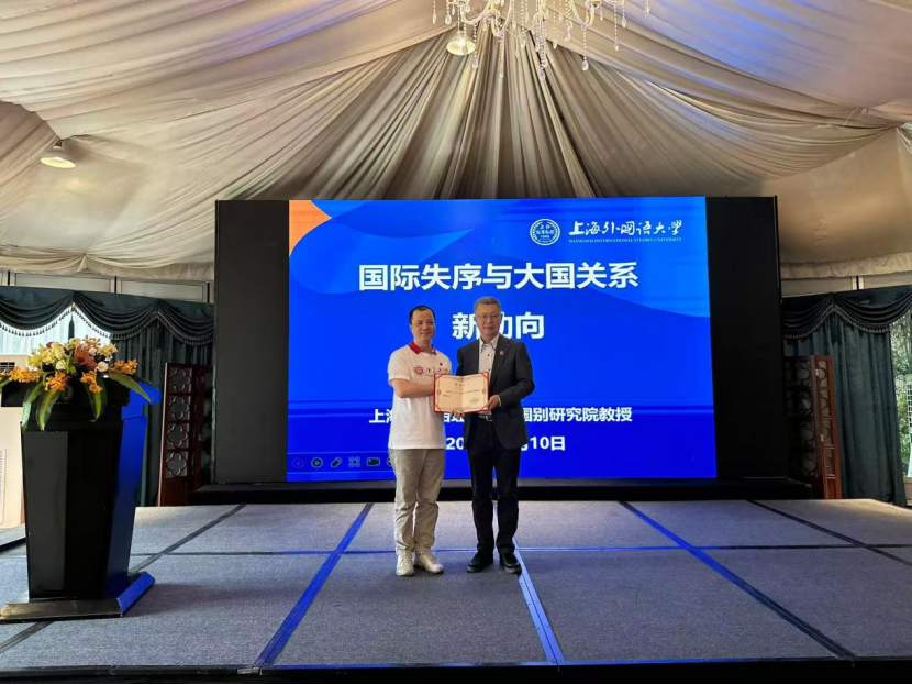1996级校友、上海外国语大学上海全球治理与区域国别研究院教授、博士生导师、“志远”领军学者杨成为广大校友作了精彩的“国际失序与大国关系新动向”讲座。他从中美关系自1969年以来每十年的主旋律、特点、重要事件开始破题,指出国际秩序进入新时代,中国在全面建设中国特色社会主义的关键时期面临新一轮的全球转型,并提出中国提高话语权、设置国际议事规则的个人思考和相关建议。理事会会长朱韬为杨成颁发专家顾问证书。
