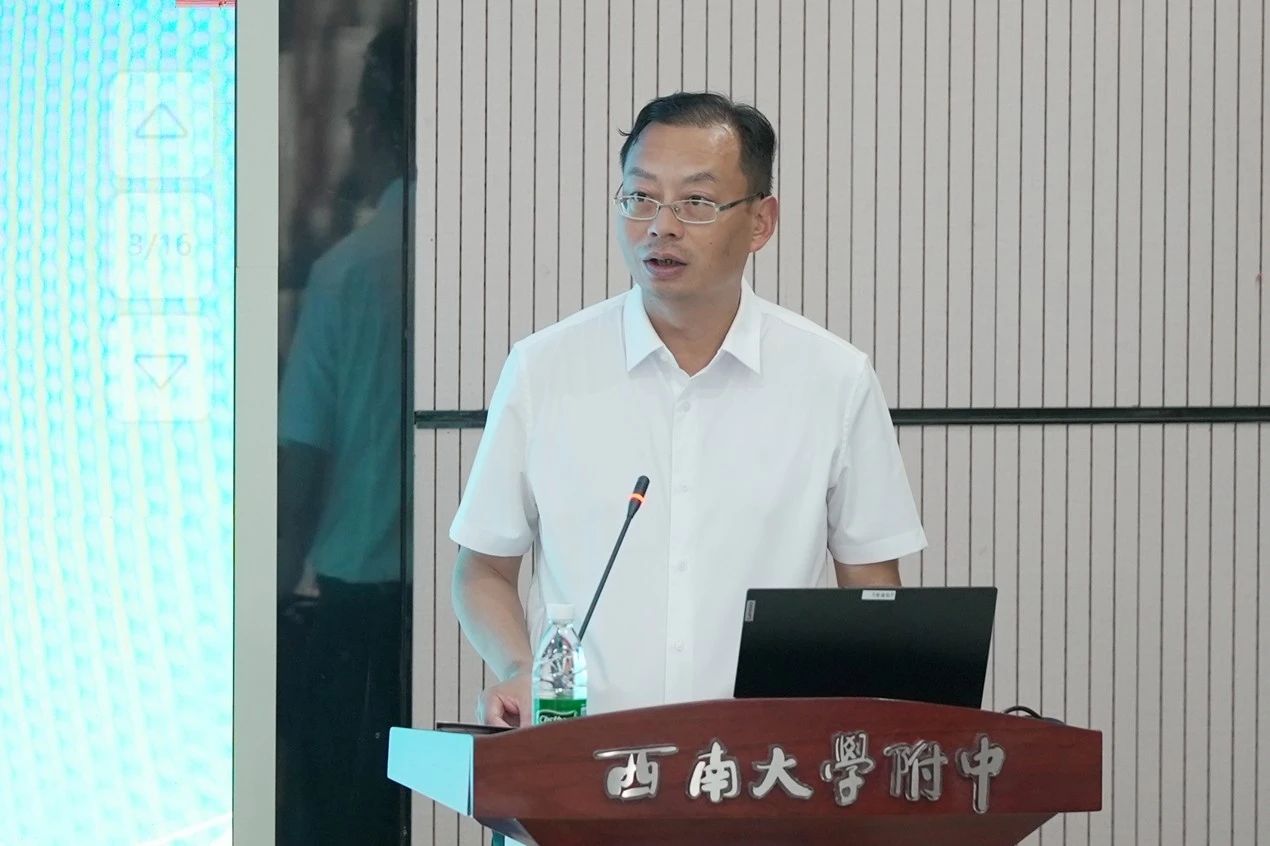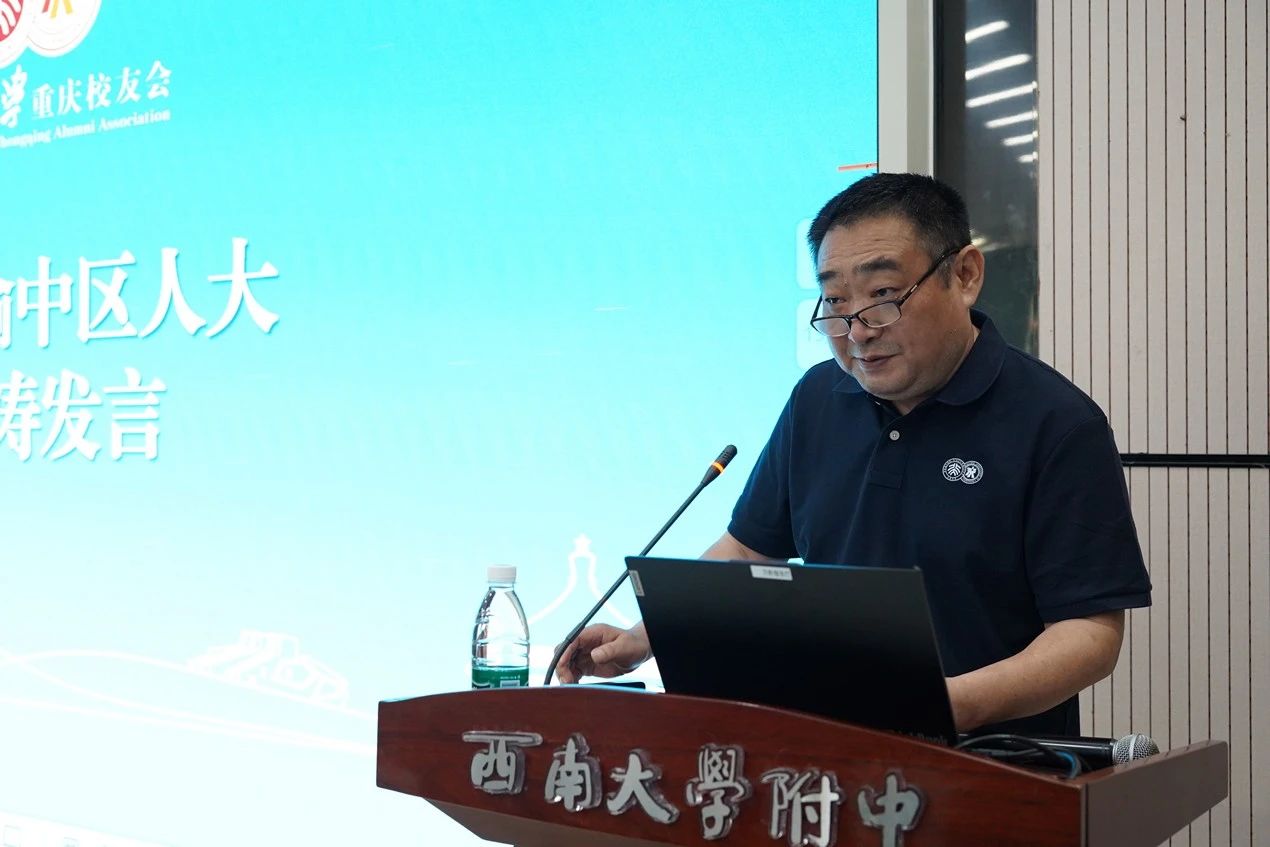 西南大学附属中学党委书记欧健致辞,希望“新北大人”胸怀“国之大者”,成长为民族复兴栋梁;期待新重庆人扎根巴渝,为地方发展注入智慧;鼓励附中学子以北大校友为榜样,用奋斗书写青春。