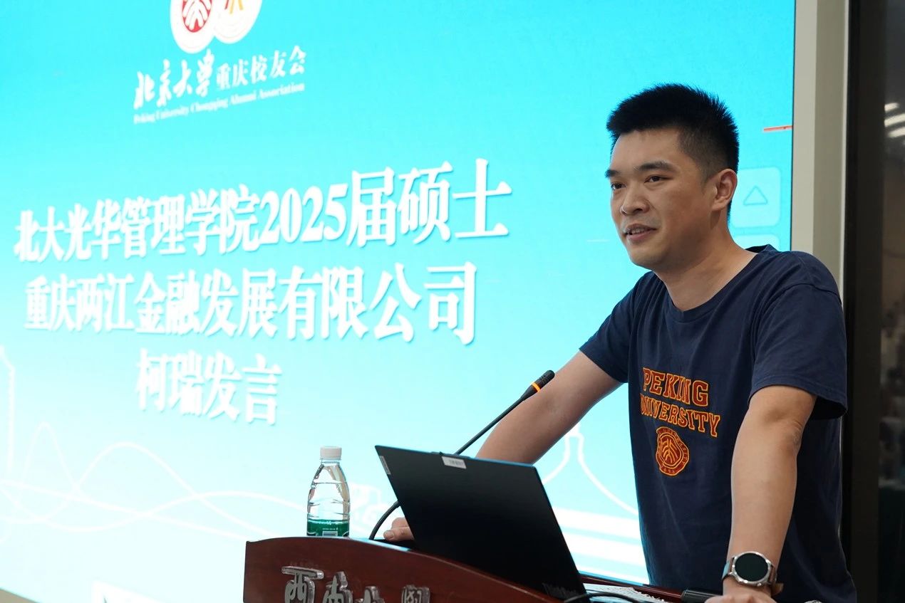 刚入职重庆市卫健委的北大医学部硕士袁瑞欣感慨:“北大给了我们翅膀,重庆给了我们天空。”她盛赞校友会是校友汲取力量的温暖家园。北大光华管理学院硕士、重庆两江基金投资有限公司柯瑞则叮嘱学弟学妹:北大最贵的是时间,要珍惜时间,利用好北大的资源,在努力学习的同时铭记北大推动社会进步的使命,积极践行北大精神。