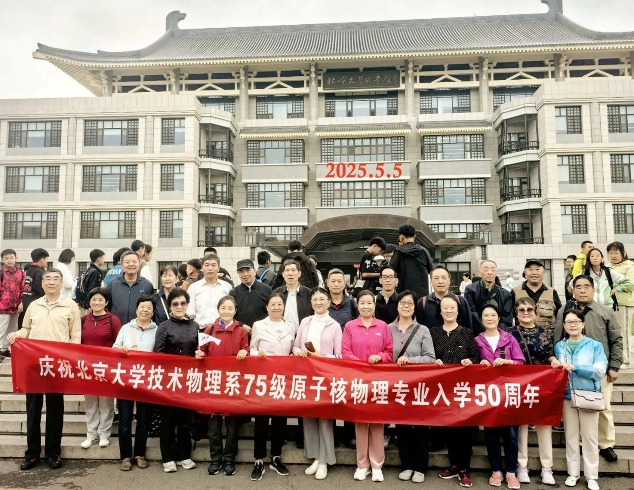 正值北大一百二十七年校庆、653工程六十周年之际,2025年5月5日上午9时,北京大学物理学院西楼113会议室,迎来了庆祝北京大学技术物理系75级核物理专业入学五十周年的同学们。出席庆祝会的老师有姚淑德、杨琥(北京大学校史馆)、高子晴(校友会)和李慧宁(《北京大学学报》社),参加庆祝会的同学共计19位(见【附录1】),还有6位同学的亲属参加了庆祝会。