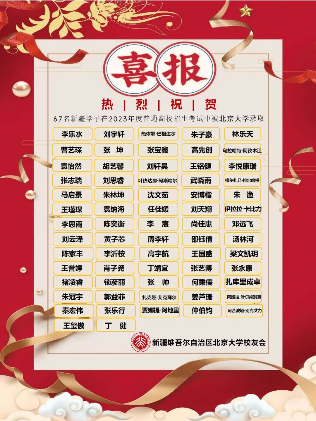 2023年8月17日,为庆祝67名新疆学子在2023年度普通高校招生考试中被北京大学录取,新疆维吾尔自治区北京大学校友会举办线上新生交流会,并组织6位2023级新疆籍北京大学新生代表线上发言。北京大学校友会副会长兼秘书...
